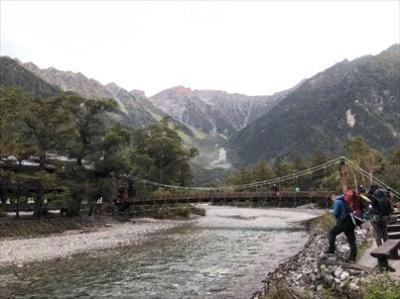 上高地から各穂高岳・槍ヶ岳へ登るの分岐点でした。穂高岳を一望できるからから沢等へ行く場合はこの橋を通っていきます。槍ヶ岳へ登る場合はこの橋を通りません。