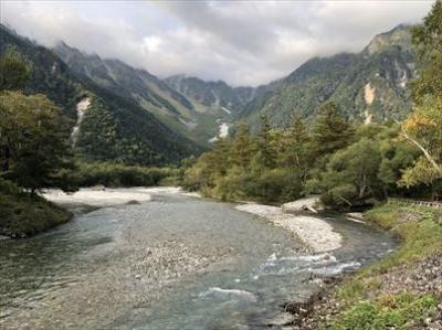 上高地中にある梓川の色がとてもすんでいて、綺麗でした。ただ気温は低いので、防寒着があったほうがいいです。河童橋の周辺にはベンチもたくさんあって、梓川の清流を眺める絶景のポイントです、お勧めです。