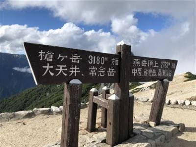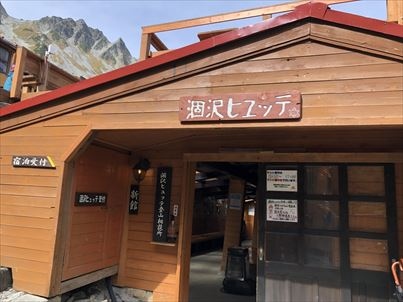 上高地河童橋のバス停から歩いて6時間のところにありました。目の前に奥穂高岳、から沢岳、北穂高岳を一望できました。