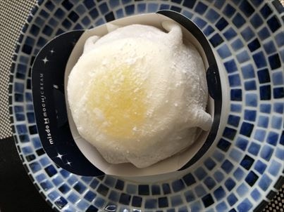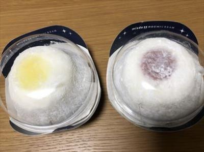 夏の新商品、ドーナツにホイップクリーム、レモンジャムまたはイチゴジャム、雪見大福の求肥から作られた和菓子ドーナツをいただきました。