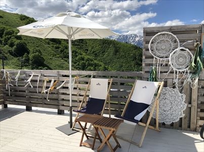 白馬マウンテンビーチと言う施設がありまして、そこで山を眺めながら、おいしいドリンクをいただき、最高!