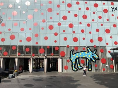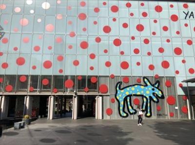 赤い水玉のデザインの美術館でした。とてもインパクトがありまして、レストランも併設していました。