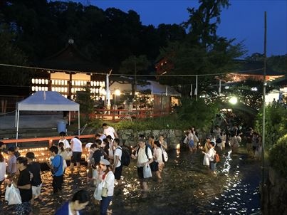 真夏の京の風物詩で、下鴨神社で行われたみたらしまつりに参加しました、水がひんやり冷たかったです。