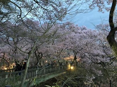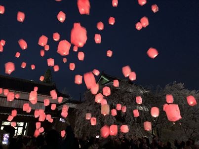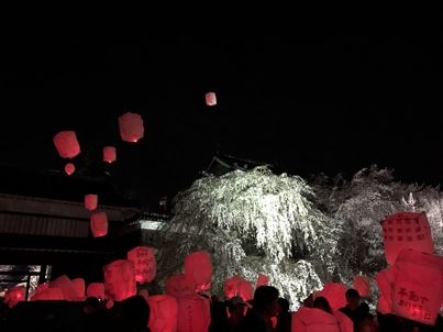 桜がとても綺麗でした、ライトアップされていて素敵でした。さらにランタン挙げもやっていて、とても楽しかったです。