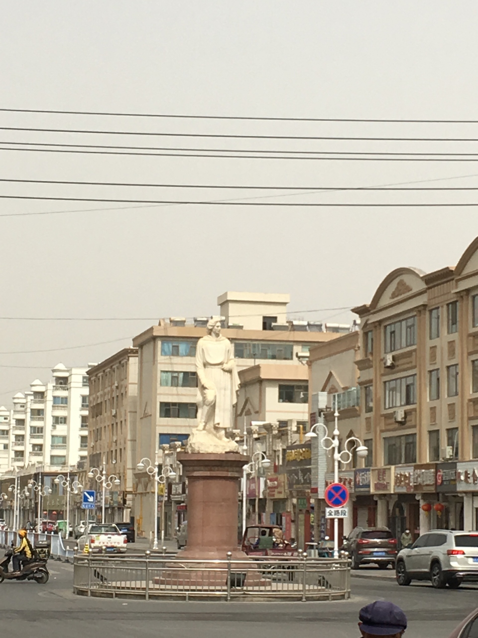 街中にある白い像でした、そんに大きくないですが、蘭州という中国のまちなかではちょと目立ちました。交差点の真ん中にありましたらので、近くまでいってとることはできませんでした、遠くからズームで写真をとりました。
