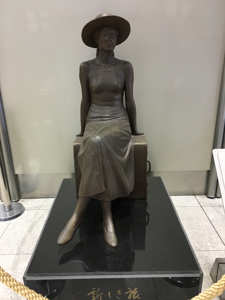空港駅に着いた時、かわいい女性の銅像がありました。荷物をもっていて、旅人を見送っていました。- 旅行時期