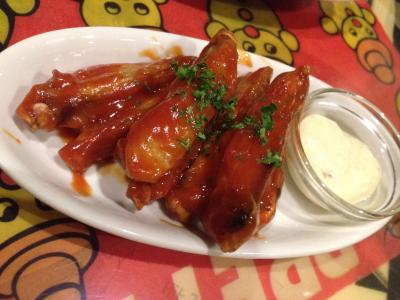 バッファローウィングは、ケチャップ味の強いチリソースでイマイチ。