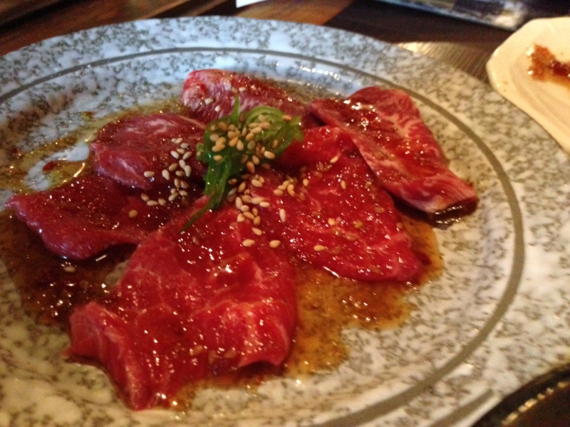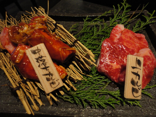 刺身(お肉の♪)とモツ鍋で勝負されていて