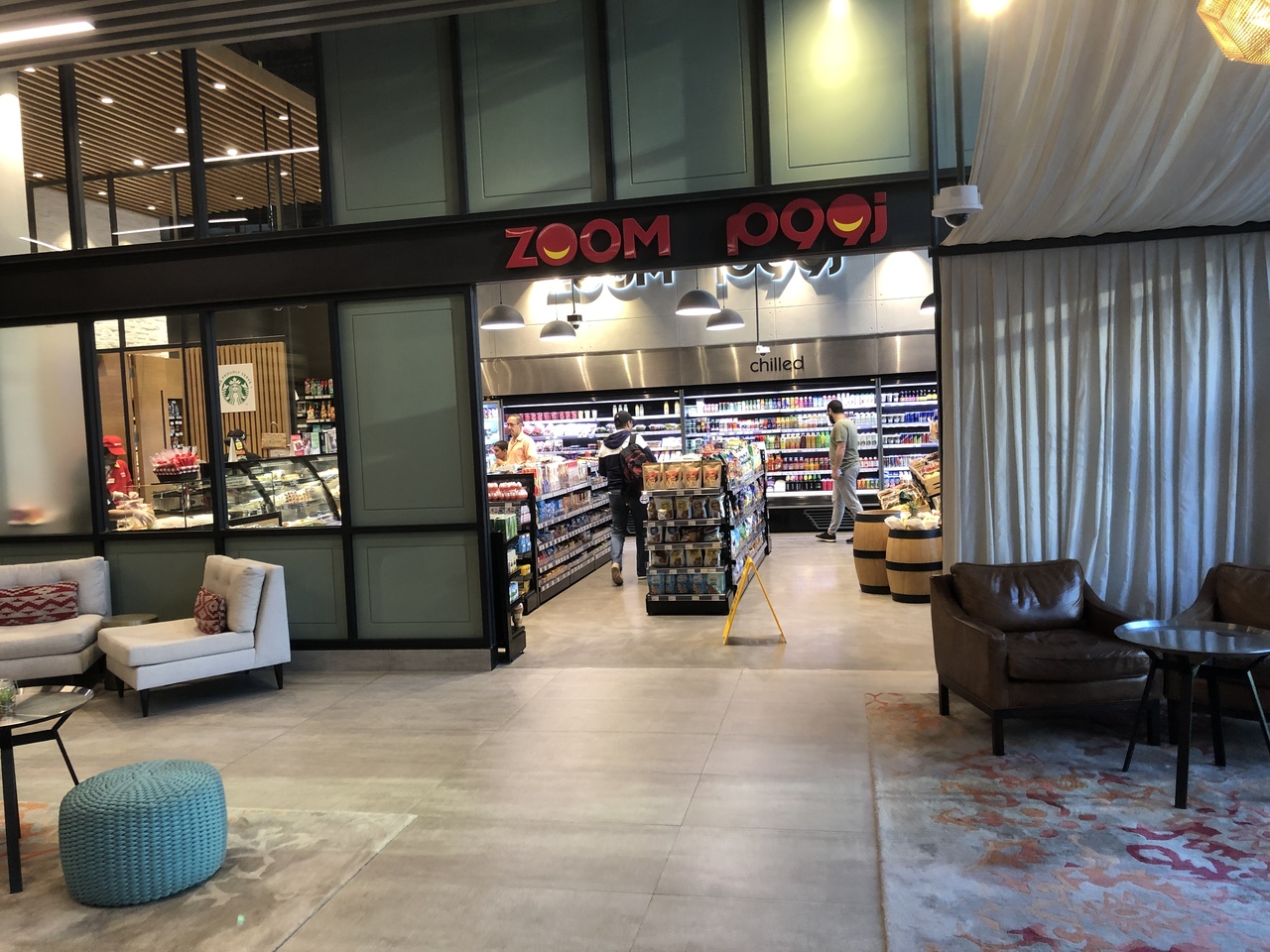 中にはスタバの入ったデリもあって、そこでパンやベーグルを買い、オシャレなロビーで食べることもできるので、予約時に朝食を付けなくて良かったと思いました。