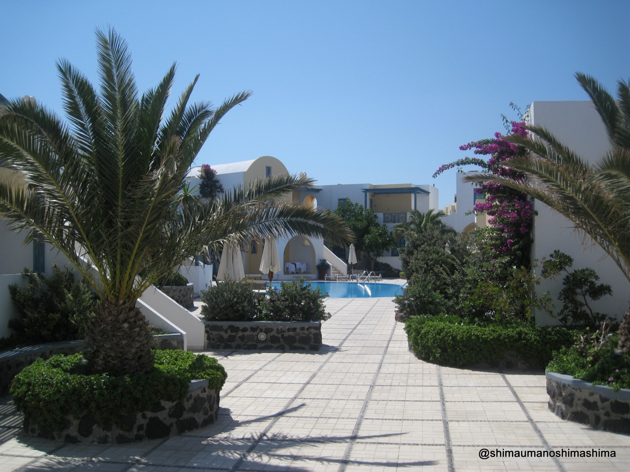 フィラの街から徒歩5分ほどにあるリゾートホテル。街の中心から離れていることもあり、静かで広々としていて、のんびり過ごすのにとてもよいホテルでした。