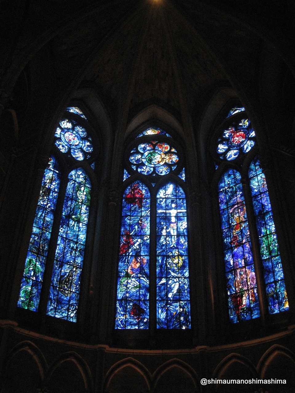 光の中、淡く浮かびあがるシャガールの絵の美しさは言葉では言い表せないほどです。立ち去るのが名残惜しく、何度も戻って見に行ってしまいました。