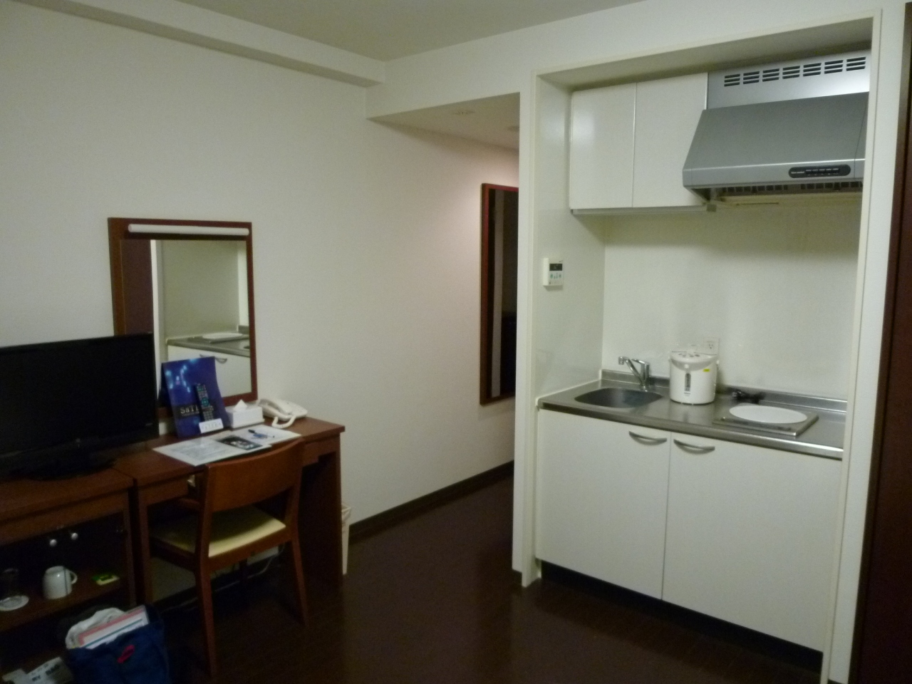- 机が狭いのが難点です。冷蔵庫はあるので同じ建物のローソンで買いもしても冷やしておけます