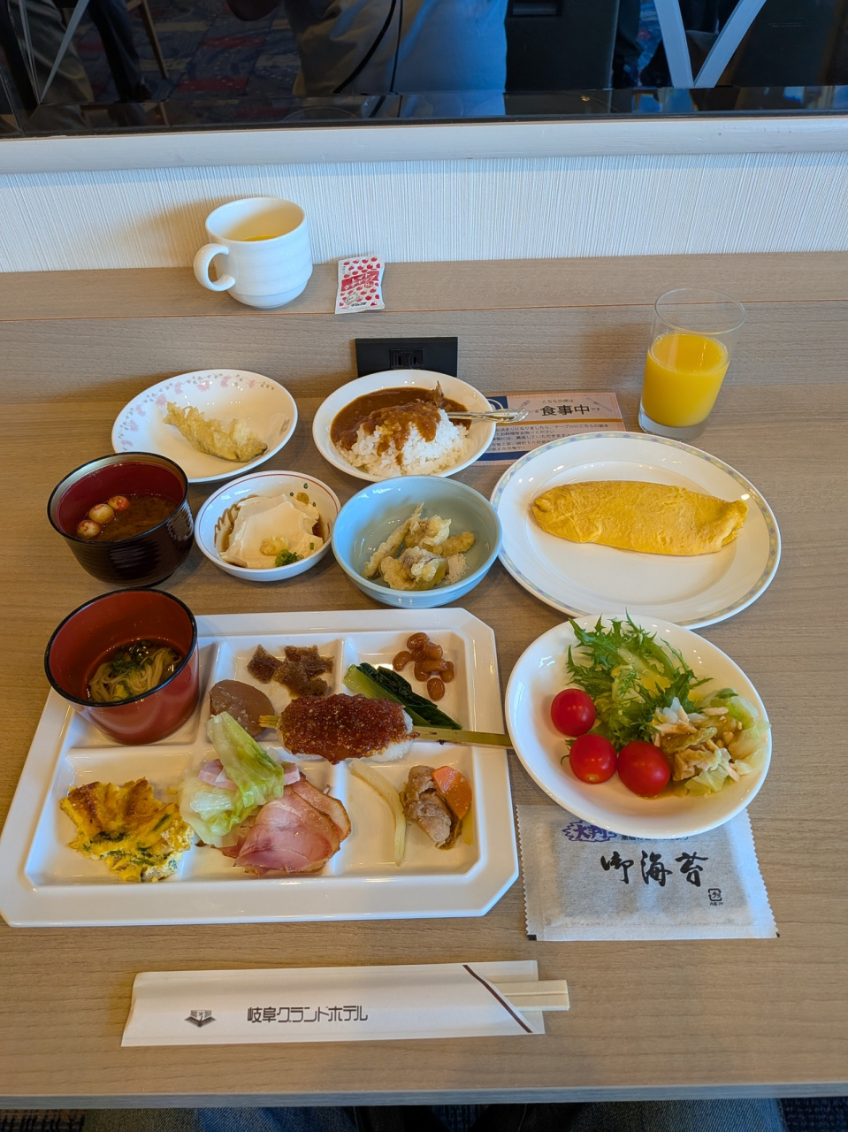 - メニューも多く、若鮎の天ぷら、オムレツが目の前で作ってくれます。メニューが多くてすべてを食べることはできませんでした。