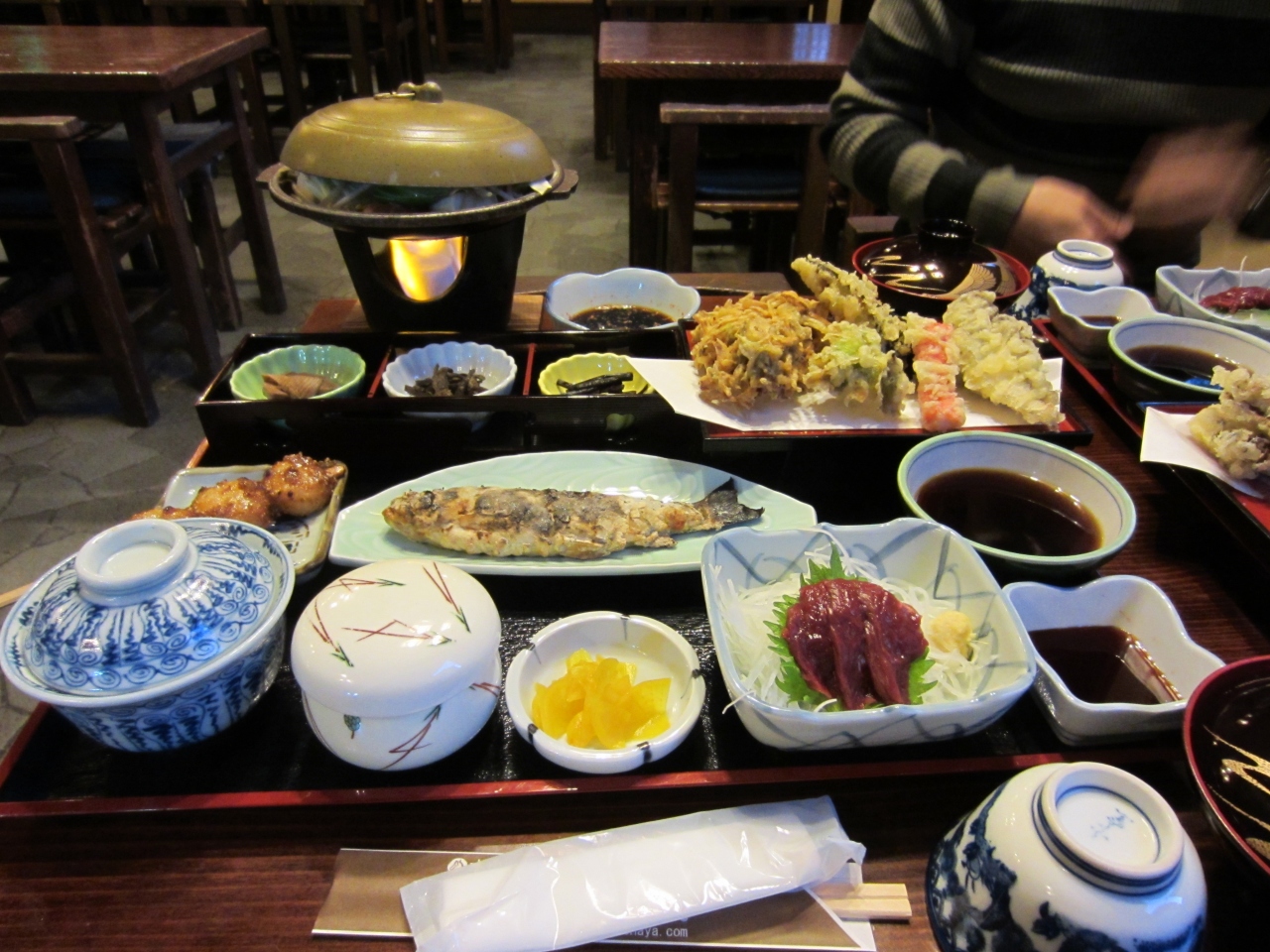 料理はボリューム満点で、馬肉、御幣餅など当地名物が一度に堪能できます。