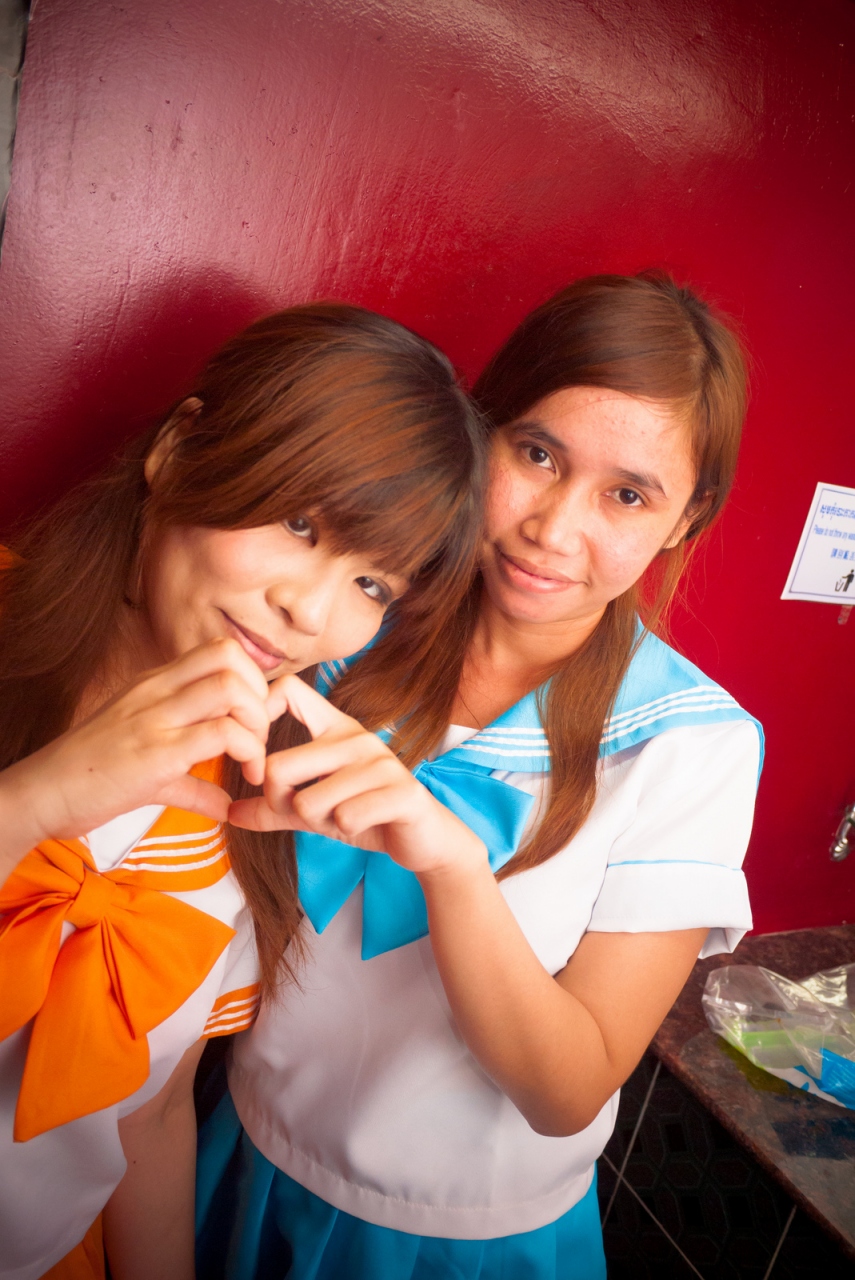 店内では地元のクメール人の女子たちがメイドやらセーラー服のコスプレをしているけれど、なぜ自分たちがこの格好をしてこんなことをしているのかをあまり理解している感じではなく戸惑っているようにも思える。ということで、全般的にヘンな面白さのあるメイドカフェじゃないかと思います。