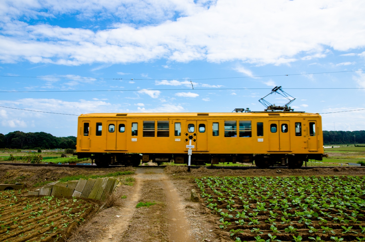 キャベツ畑のなかを進むのどかなローカル線。毎年のように存続が危ぶまれるものの、そのたびになんとか切り抜けていて、いまだにちゃんと走ってます。