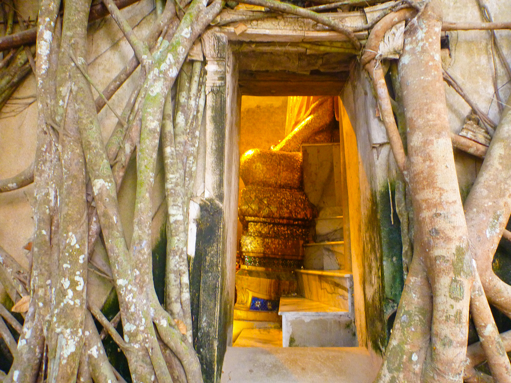 キラキラなタイの寺院には珍しく、菩提樹に囲まれた趣ある寺院。カンボジアのタ・プローム寺院を10分の1くらいに小さくして、寺院の建物だけになった感じ。