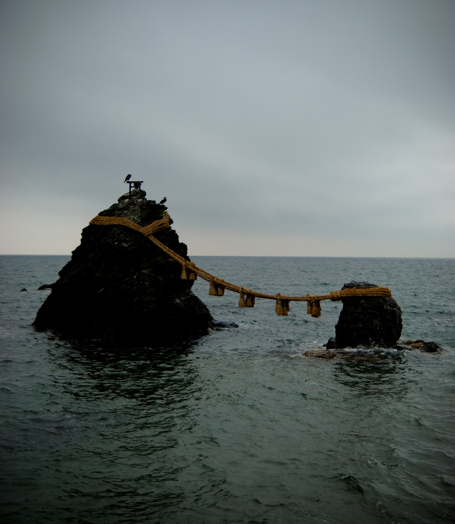 二見興玉神社のなかにある有名な夫婦岩。この神社の鳥居の役目をしているらしい。