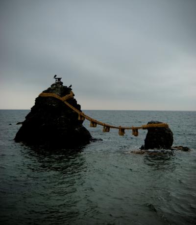 4月から8月にかけては岩の間から日の出をのぞむことができるらしいのだが、僕がいったときは天気がいまいちでそれどころではなかった。そして、夫婦岩を見に行くまでの道はたまに波をかぶって冠水することもあるらしいので注意が必要。