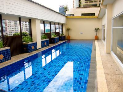 屋上にはプールつきの小さなスポーツジムとランドリーがあって、自分で洗濯して合間にプールで遊んだりすることも可能。