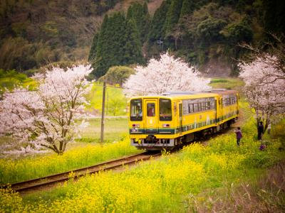 千葉のローカル線いすみ鉄道、東総元の駅周辺は桜の時期を迎えて、桜と菜の花と、かわいい列車のコントラストがきれいな時期となっております。