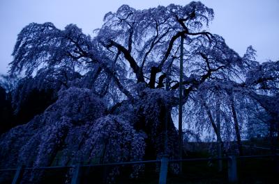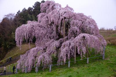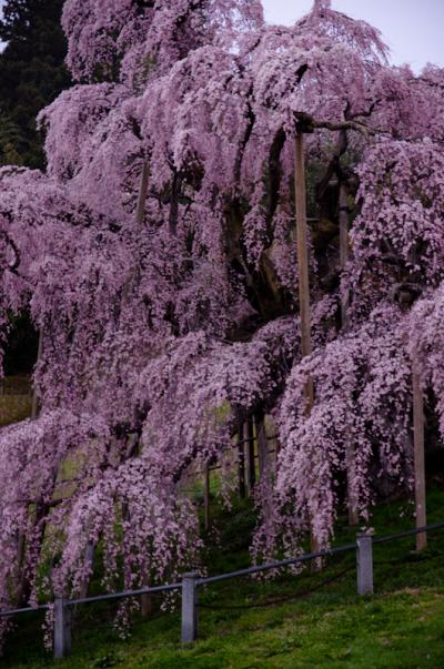 今年は4月15日に開花したあと、満開になったのは4月22日。で、訪れたのは翌4月23日となります。滝桜は何回か観ていますが、こんなにもきれいな満開の時期にきたのは初めてで、巨木からまさに滝のように花が咲いている姿は圧倒されます。
