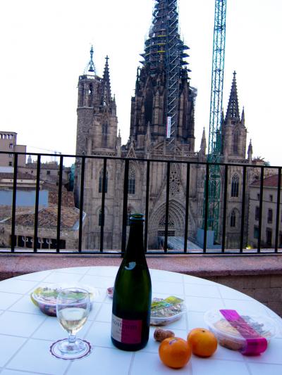 そして、一番のサプライズは後半にステイしたときにスイートにアップグレードしてくれたこと。最上階はルーフバルコニーがついていて、ここではテラスでのんびりしながらカセドラルを眺めたり、暮れゆくバルセロナの街並みを眺めたりしてのんびりすることができます。僕は近くのデリでワインと食事を買ってきて、ここのテラスで食べたのがこの旅一番のごちそうだったかも。てか、ここならさらに高い値段出しても泊まる価値あるかも。