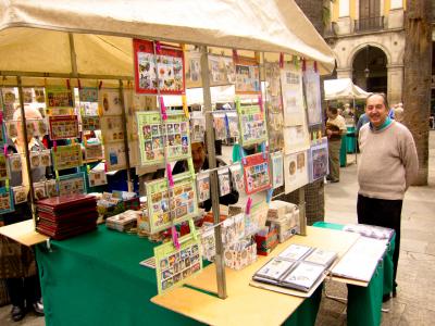 それ以外にもナツメヤシ?の樹が植えられていて南国気分が盛り上がります。広場を取り囲むようにあるレストランも人気店が多くてオススメなのですが、さらに日曜日の昼間には古札と切手の市が開かれていて、老男で賑わっています。僕は老男・・という感じではないと思うのだけど、切手とかは好きなのでテンションあがります。昔のお札もいまの味気ないユーロ紙幣と比べると雰囲気があって、使えないけど旅の思い出に買ってみたりして。