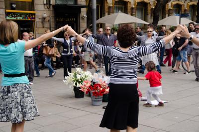 毎週日曜日の12:00から行われるサルダーナ(カタルーニャの民族踊りと演奏)は必見