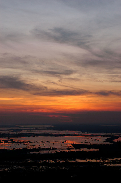 しかし、ここから見える景色は絶景。水田と湖の境目がよく分からないのですが、見渡す限りの水辺からあがる朝陽や夕陽は心が洗われる気がします(気分の問題ですが)。