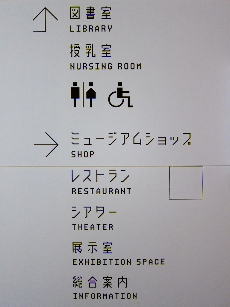奈良美智のあおもり犬が有名な美術館ですが、90度と45度の角度でデザインされた菊地敦己氏のオリジナルフォントもセンスよくて必見。