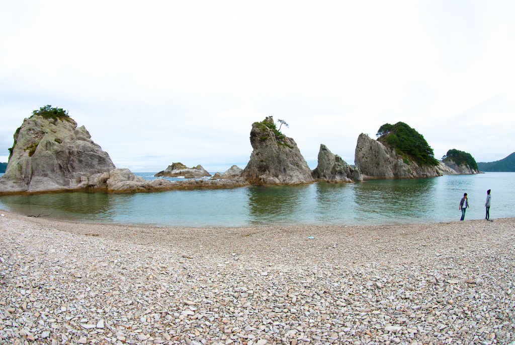 JRのポスターとかにも登場している浄土ヶ浜。一度行ってみたかったんだけど、あいにくの曇り空で完全な絶景ともいえず・・しかし、賽の河原みたいな浜辺と海の風景は美しかった。