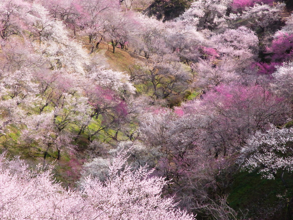 関東有数の梅の名所。ここはなんといっても山の斜面に植えられているので、頂上から見下ろすと様々な種類の梅を一気に眼下にみることができます(平地だとこうはいかない)。