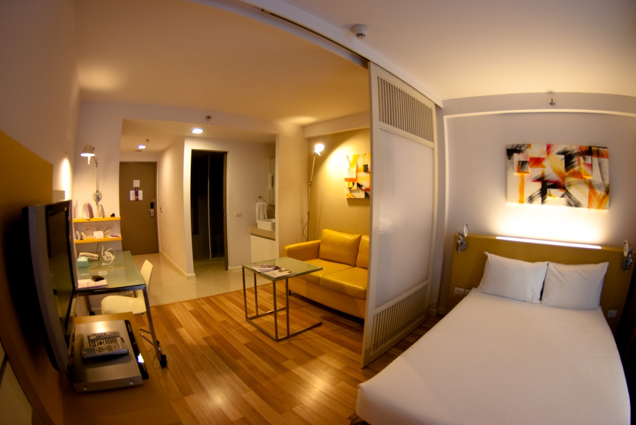 場所はスクンビットで空港からタクシーで30~40分くらい(値段は高速つかって280Bくらい)。BTSのASOK駅からも近く、他のひとのクチコミにもあるようにExchange Towerという、赤坂ツインタワー(旧館)のようなオフィスビルを通り抜けると便利。