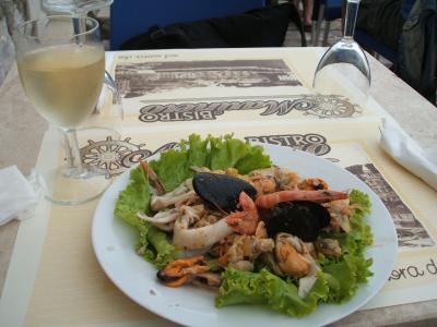写真の料理はスプリットから船でフヴァール島へ行ったときのランチです。海の幸前菜・ムール貝白ワイン蒸し・ワインとパンで2000円位で大変満足でした。- 旅行時期