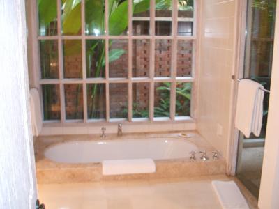 ウブドゥは京都の家のように入り口が狭くても奥が深く広がるホテルが多く、ここのウマ・ウブドゥもそうです。隣はネカ美術館、前がスペアリブで有名なノリス・ワルン、という広い通り沿いですが、中は静寂そのもの。規模が小さいのでスタッフも名前を覚えてくれて会話も楽しめます。ホテルのデザインも明るくスタイリッシュ。オーストラリア人シェフの朝食はメニューから選んで作ってもらうもの。スパ・ジムや朝の田んぼトレッキングツアーもあります。プールサイドにはライブラリーもあり、ゆったり過ごしたい人には適しています。私は一人だったので広さは十分ですが、テラスルームのカテゴリーだと2人は少し狭いかも。写真にある、窓がついているバスタブで昼間お風呂に入ると癒されます。横のシャワーは半戸外で気持ちいいです。