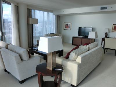 息子の結婚式で宿泊しました。参加者総勢13人が同じホテルに滞在し連日宴会ができる広いリビングルームを満喫しました。大型冷蔵庫や電子レンジ付きのキッチンもあり簡単な調理も可能ですが、私たちは外部のレストランやフードコートを利用しました。