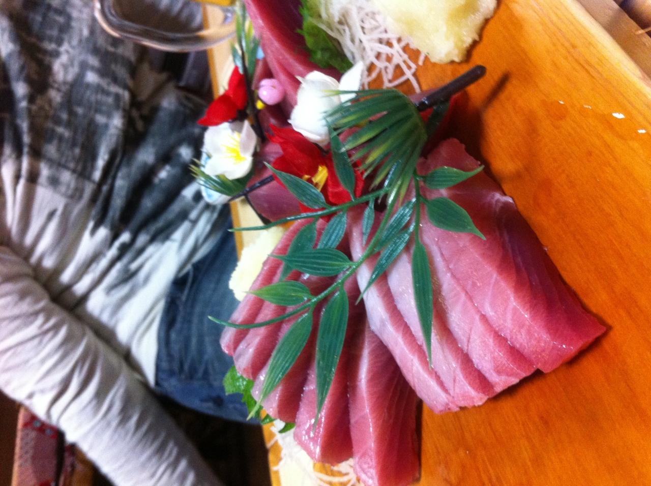 最初はビールを飲みましたが、2杯目からはみんなでお店のオリジナル焼酎「貴和」を頂きました。お料理は、はじめに奨められた鹿児島から取れ立てで仕入れたという鰹の刺身が絶品で、揚げ物のおこぜ、メヒカリもさくさくと美味しく、いわきではめひかりを上げられないという話になり、今は静岡産だという。いわきが好きで~と話をしていたら、刺身でサービスでもう一品だしてくれました。のどぐろの煮物も絶品でご飯食べたいなビームを出したんですが、どうやら準備が無い様子。多少、小腹は満たされていなかったんですが、美味しさとフレンドリーな対応には、十分満足して、宿へ。