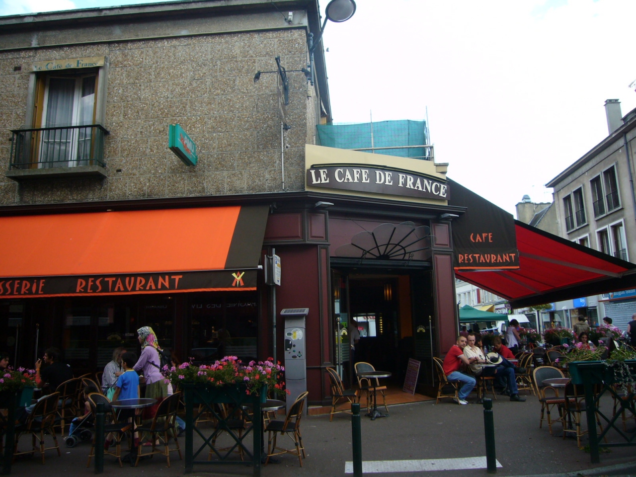 ブラッセリー(Brasserie)兼レストランになっている。ムール貝を食べている人や、肉料理を食べている人。どれを 覗き見しても おいしそう。