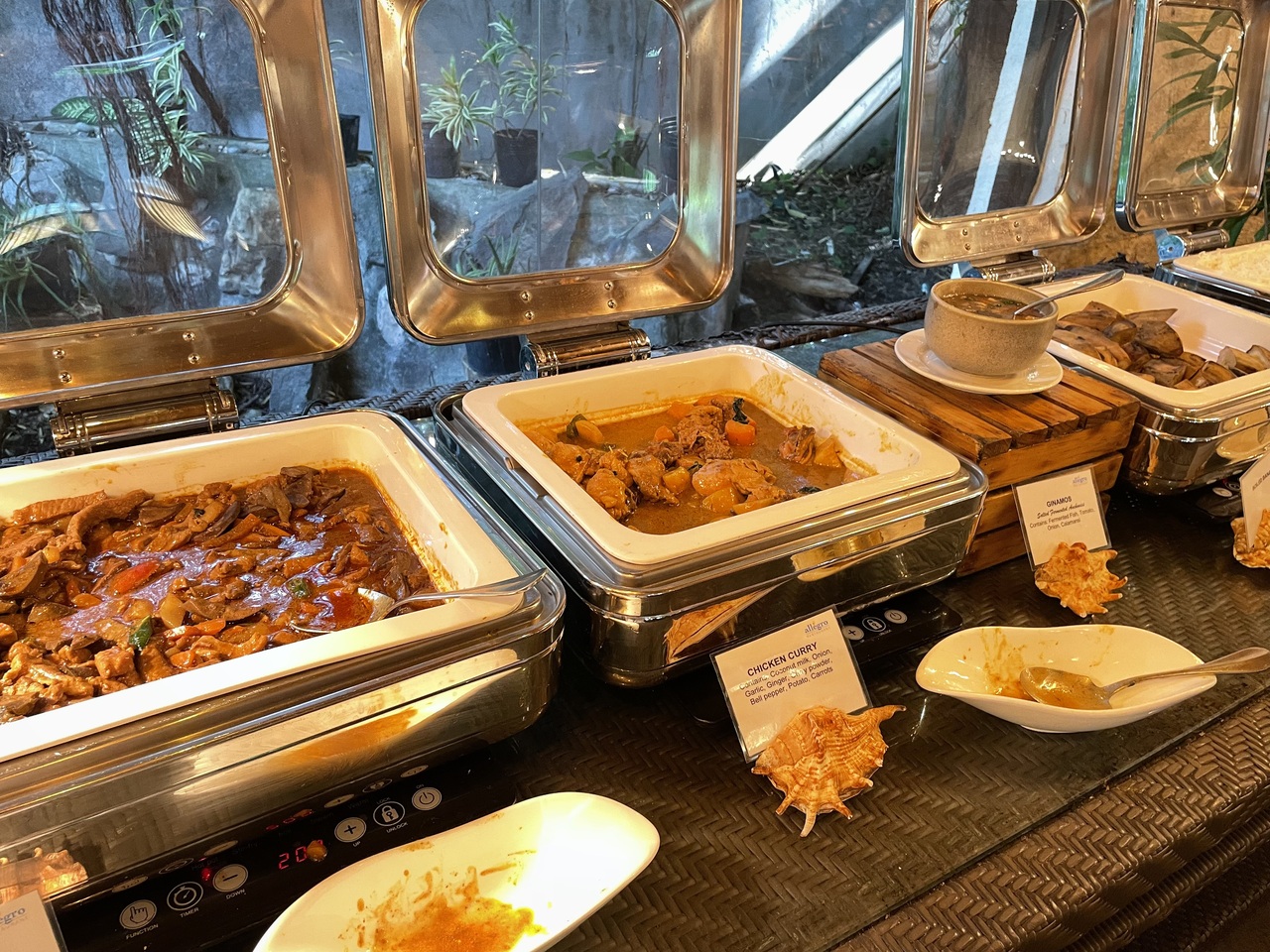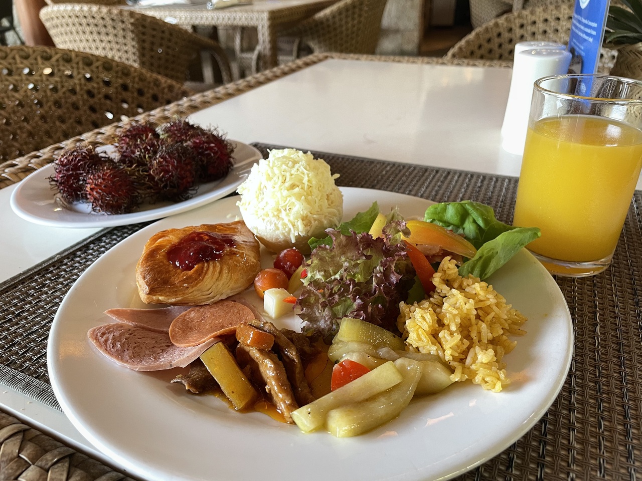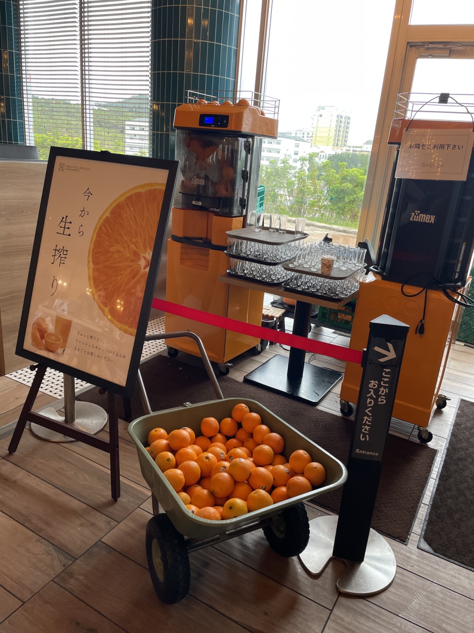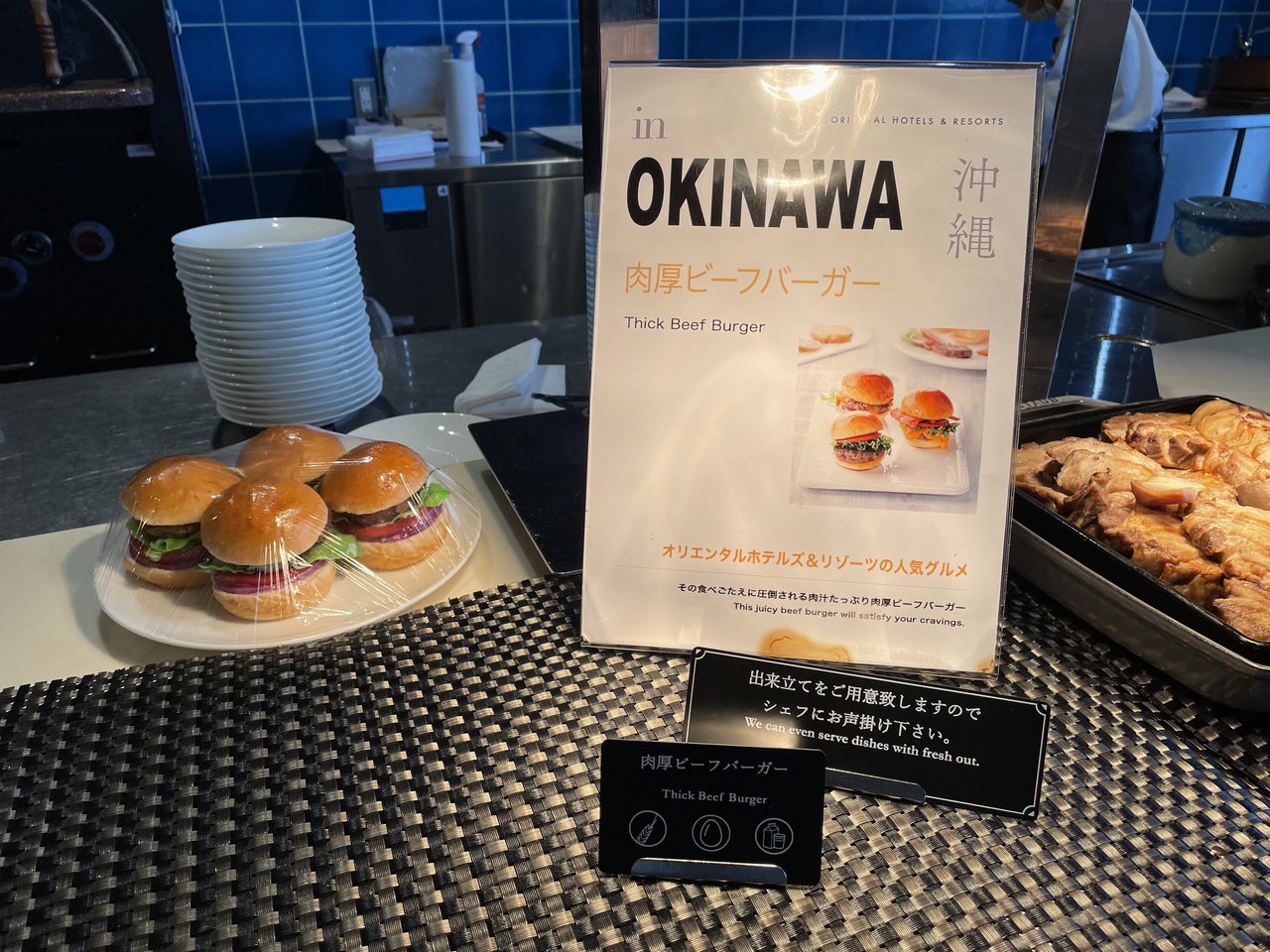 朝食ビュッフェがタコライスや温かいミニハンバーガーやポーク卵おにぎり等沖縄ならではのものを楽しめるように提供されていて、連泊でも飽きなかった。デザートにブルーシールのアイスがあるのも良かったし、生搾りオレンジジュースのマシンがあるのも素敵☆