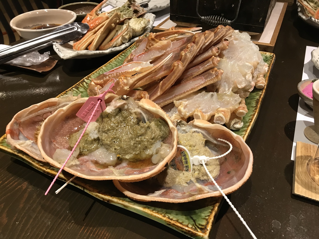 地物タグ付き松葉蟹は1人1.5杯のプランでもお腹いっぱい過ぎて鍋物の野菜を残してしまう程で、蟹みそも1人1.5ずつあり、甲羅酒も最高でした☆☆☆
