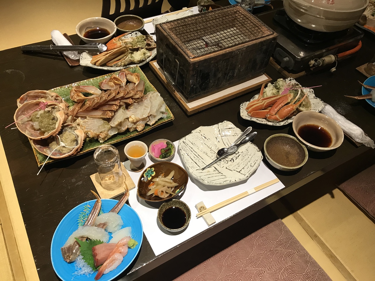 香住の地物タグ付き蟹が心ゆくまで堪能できる静かでお洒落なお宿でした。