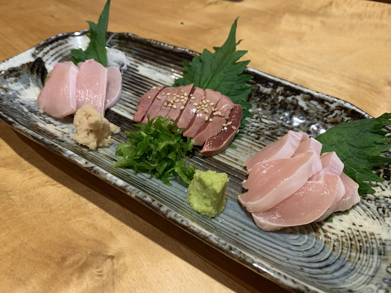 鶏のお刺身も焼き鳥もとっても美味しい。