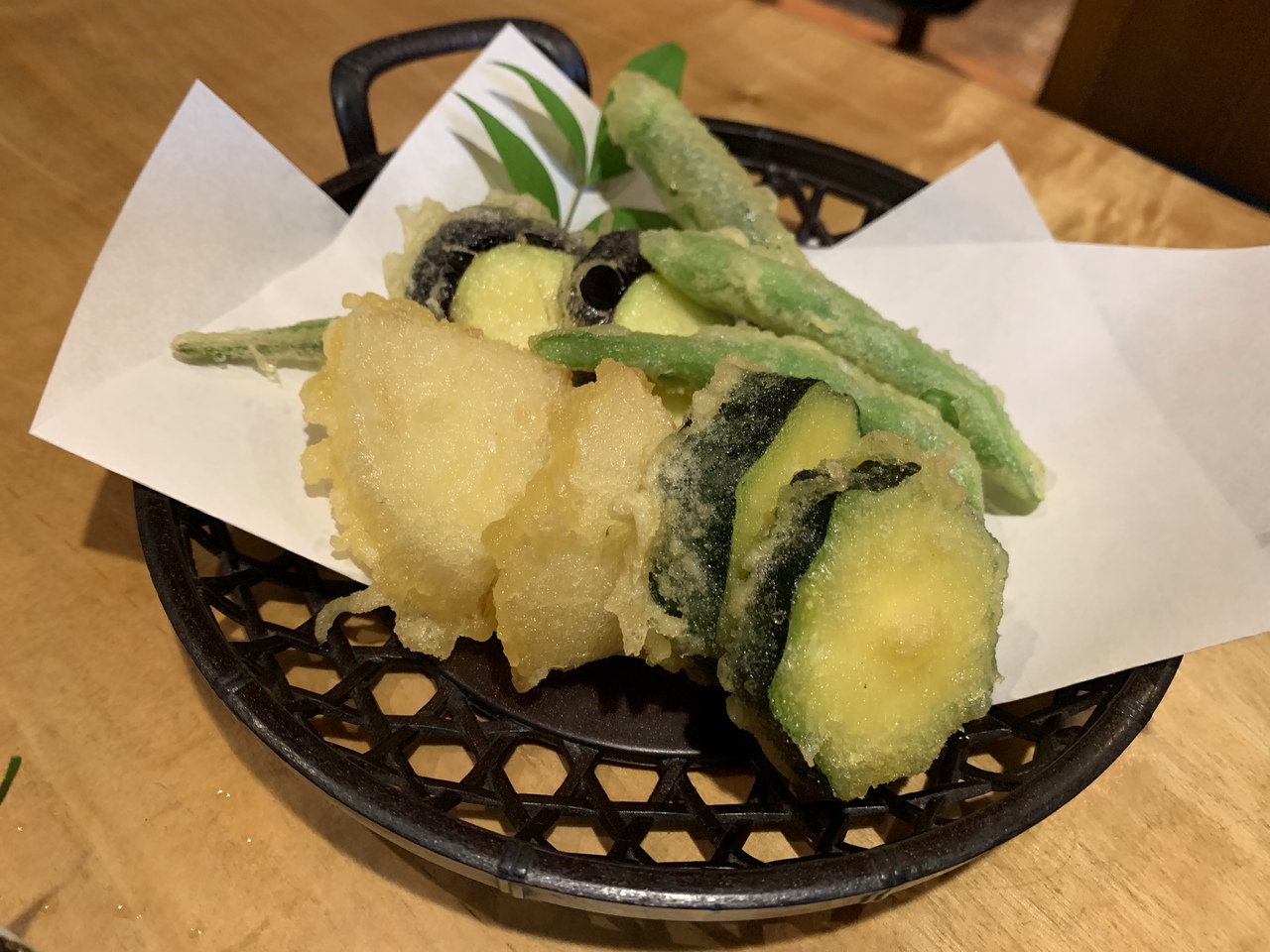 十津川の野菜を使った天ぷらは野菜のみずみずしさが感じられ、気分もリフレッシュ。