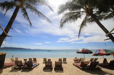 泳いだ後は、ビーチ沿いのビーチチェアーで一休み。海のきらきらと陽射しが...