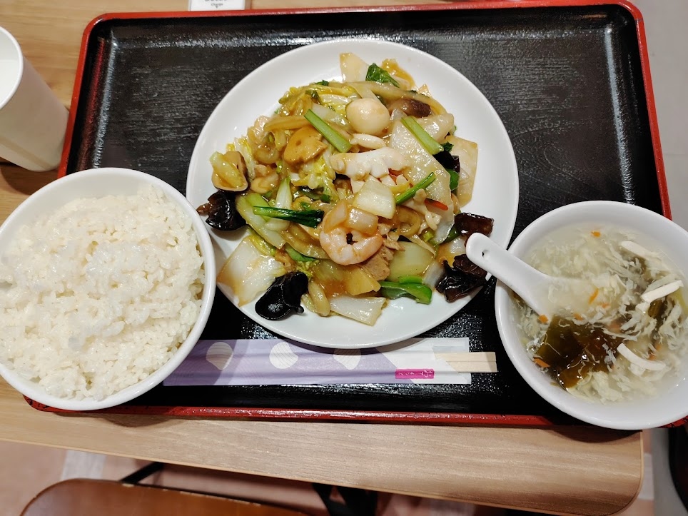 八宝菜はしょうゆ味でしたが味付けが少し好みではなかったです。