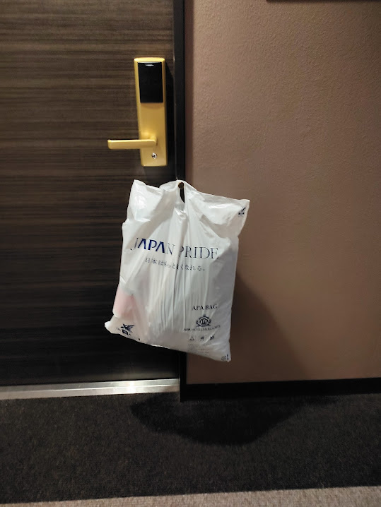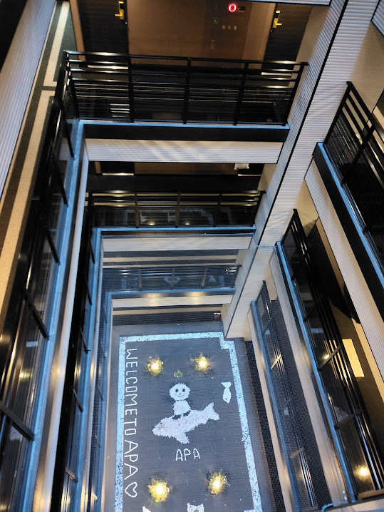 アパホテルはどこもロビーが荷物で溢れかえっていますがここも御多分に洩れず、ロビーがカオス状態ですw