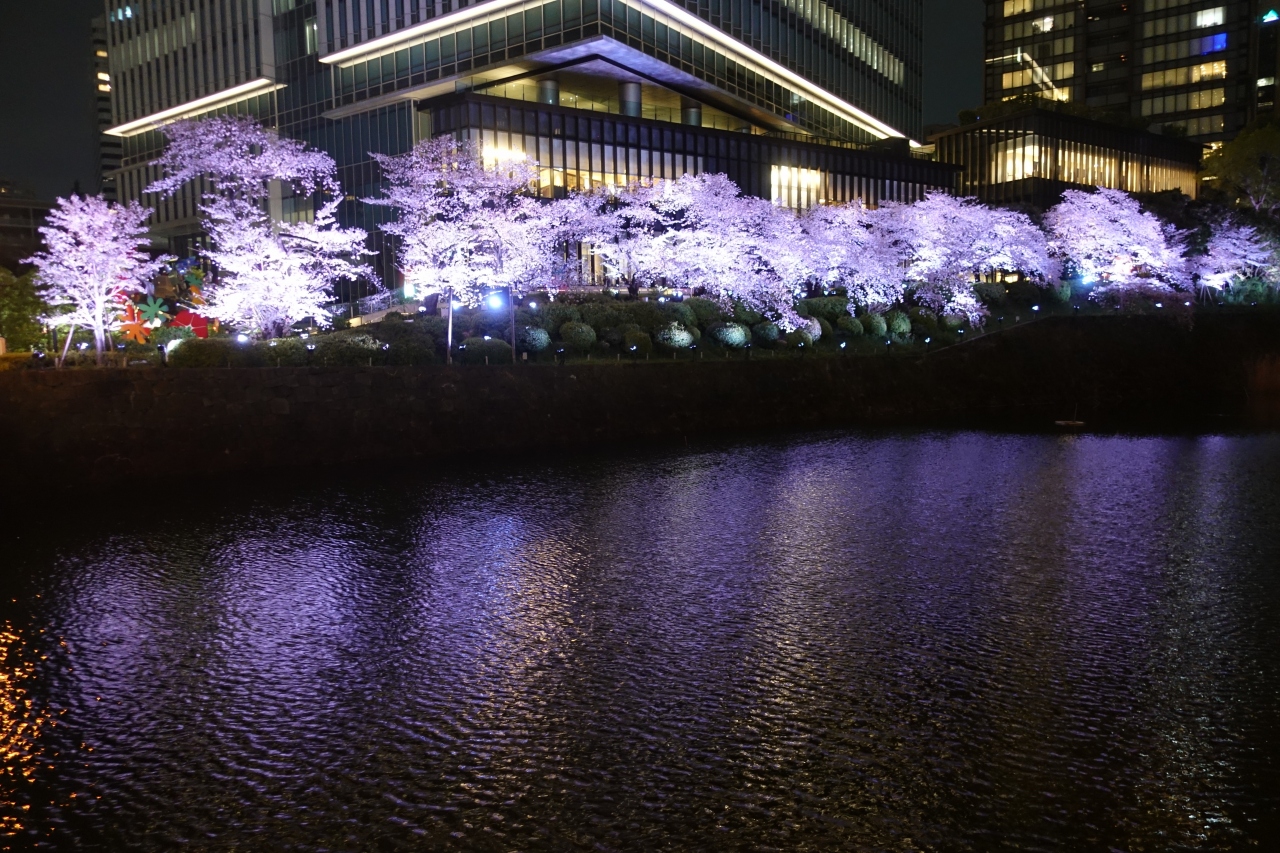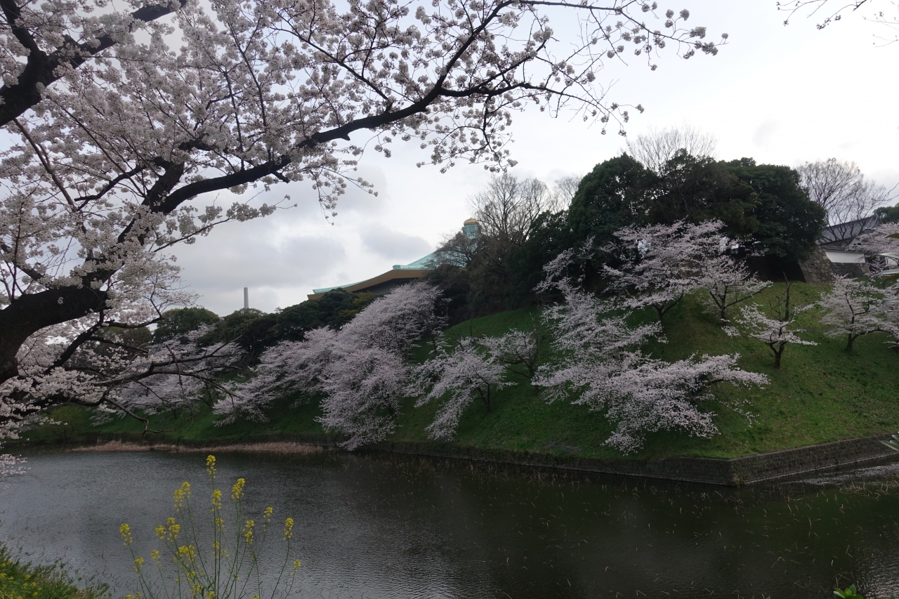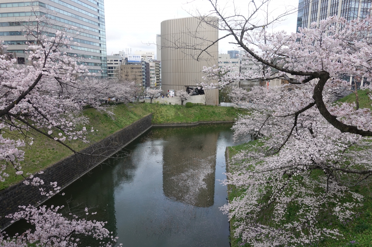 この時期はお堀の向の北の丸公園の木の間から見るというのも意外性があっていいです。