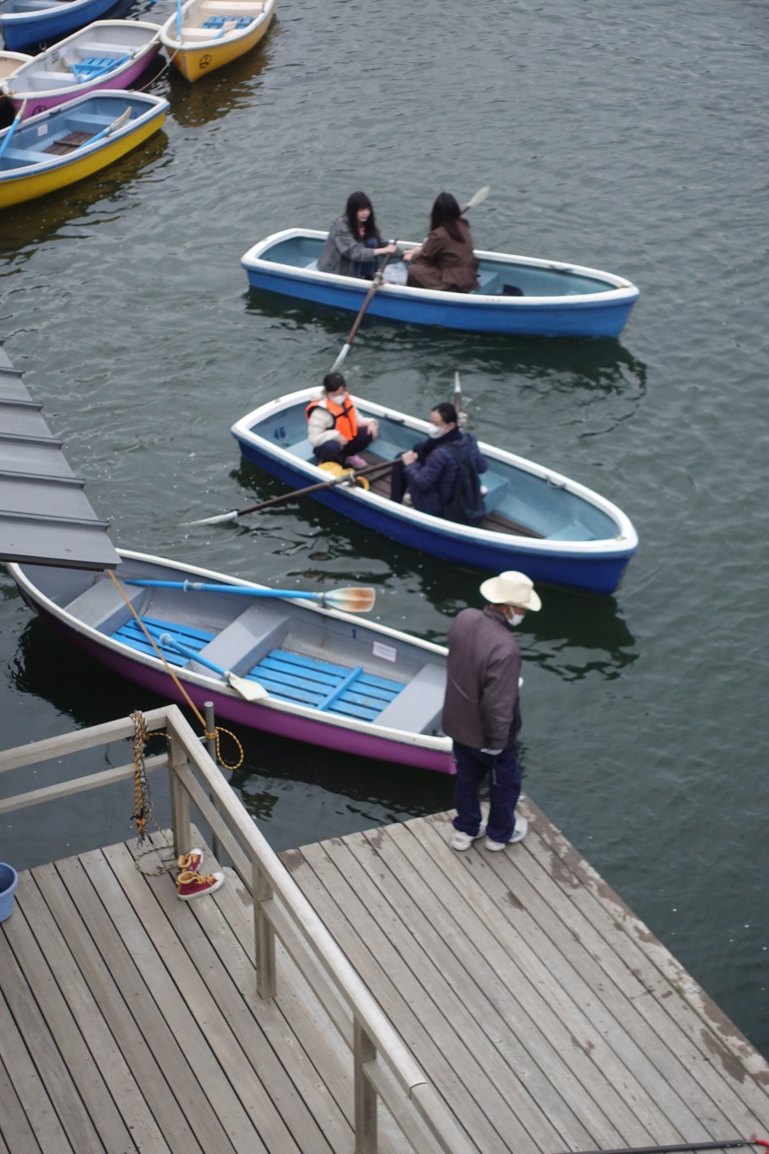 ボートから桜を見ようとする人でボート乗り場も大行列です。