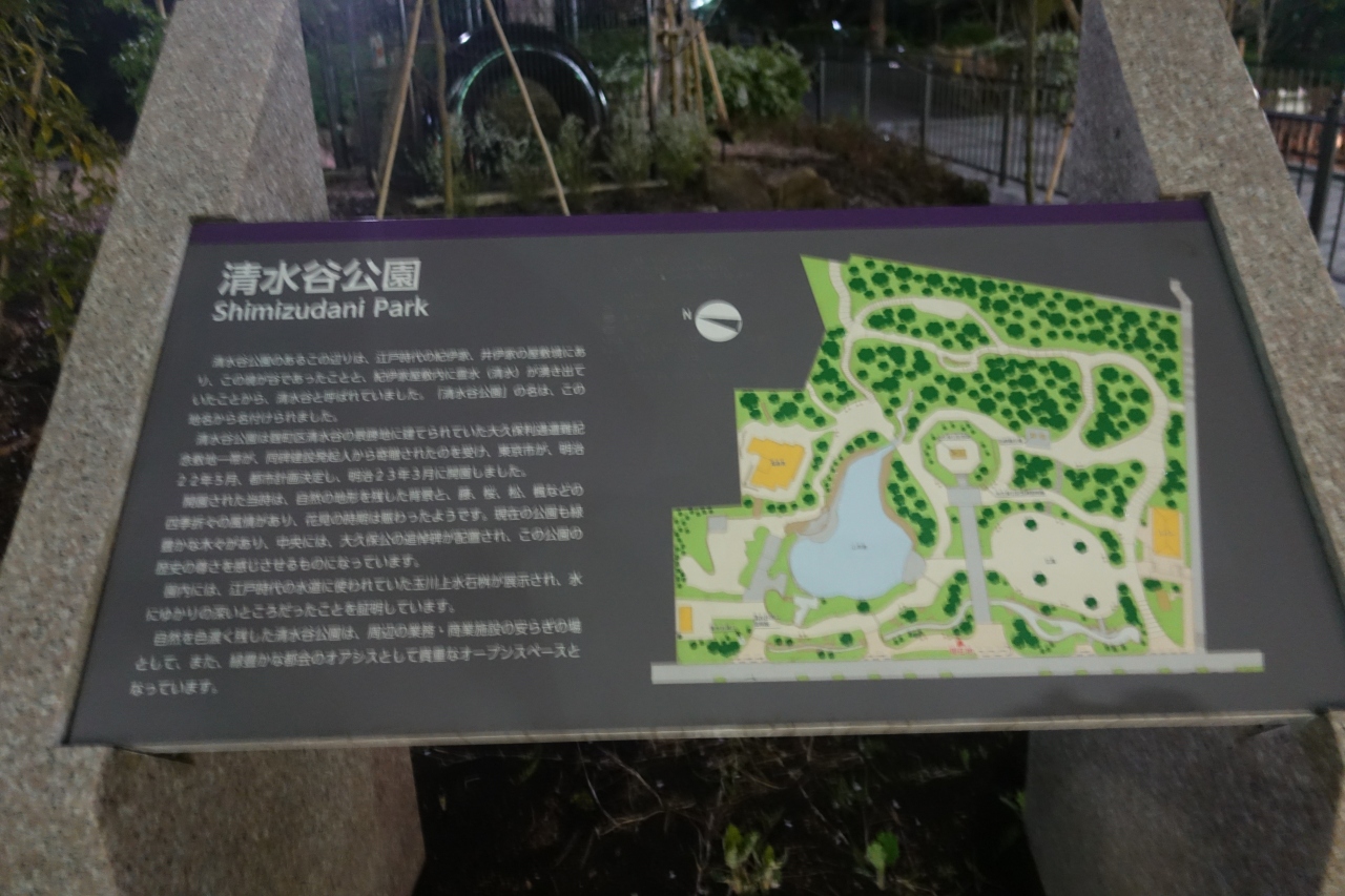 この公園のあたりに紀州徳川家の上屋敷があったらしく西側にあった井伊家の中屋敷との間の谷から清水が沸いていたので清水谷と呼ばれていたんだそうです。